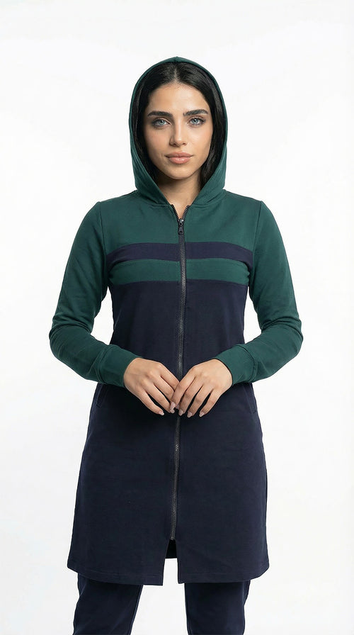 بيجاما هايدي مبطن من الوشين بكابيشو وخطين خارجيين سماوي في كحلي