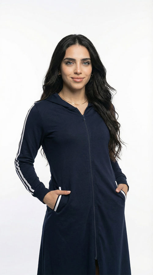 مايوة بوركيني مطبوع خطوط كحلى فاتح