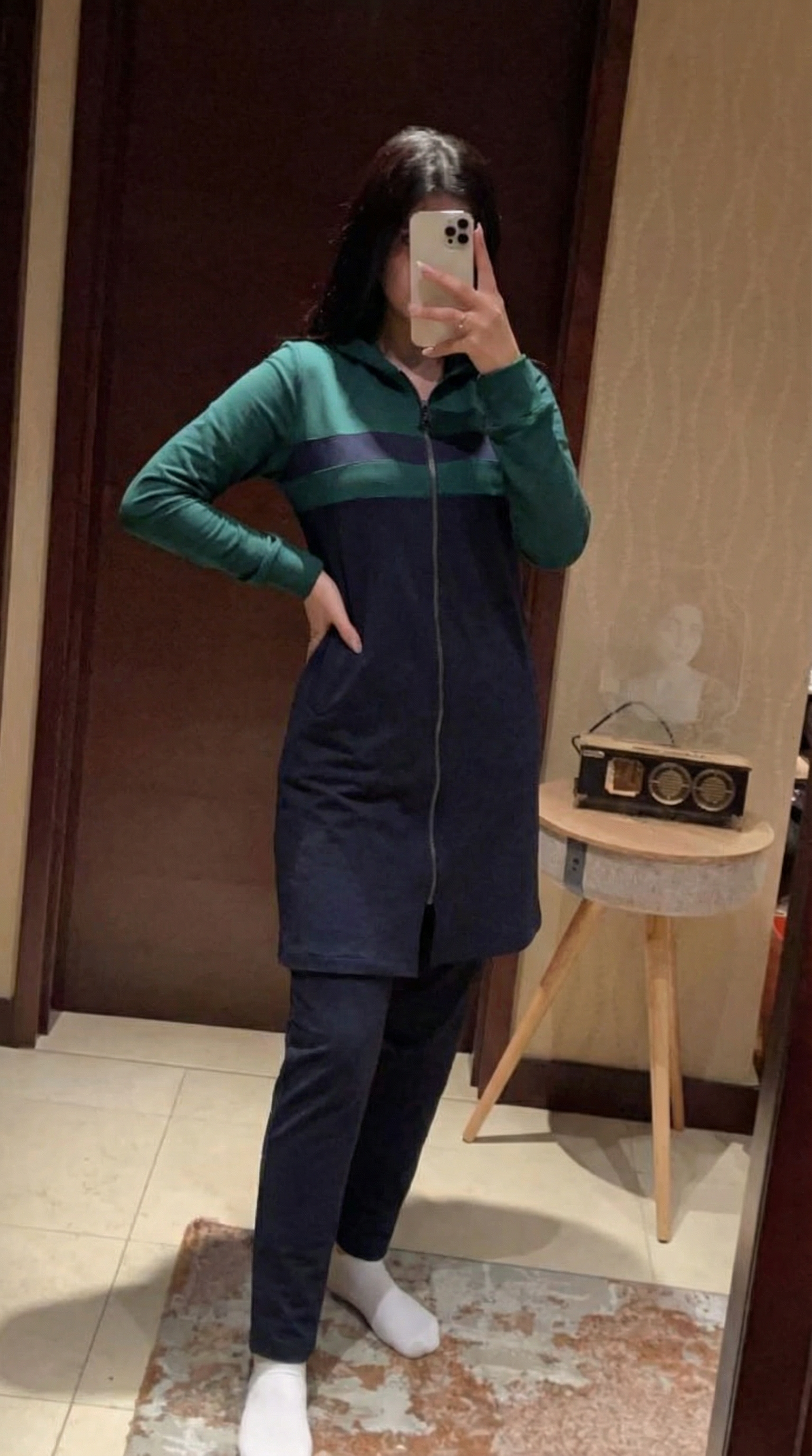 Maillot burkini long à fermeture éclair couleur noir et rose avec bonnet / 2 pieces